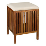 Kosz na pranie z siedziskiem z materiału imitującego len ACINA, drewno akacjowe, 55 litrów, WENKO